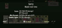 44. I’ve now played the iOS version of Finished! more than ninety times, and as much as I love physical games and dislike digital ones, this version of Finished! is ideal for me since I often mess up my candy situation (as demonstrated in the playthrough video below) and find the shifting of cards from the past to the bottom of the deck more tedious than meditative.