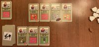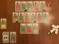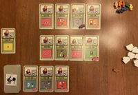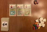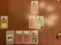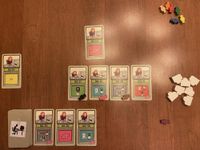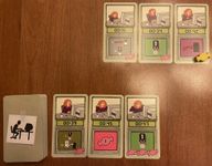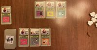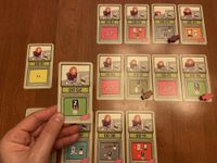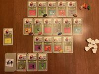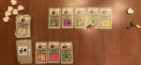 7. You start the game with seven candy, and you can acquire more candy in two ways: First, some file cards depict a candy on them, and when you draw a candy from the deck, you add one candy to your personal stash from the candy reserve. Second, if you manage to place three or more file cards in numerical order, say, 16/17/18, then you process those cards, you receive one candy from the reserve for each card after the first — so two candies in this example. Seriously, you must have the focusing capabilities of a six-year-old because you’re rewarded for doing what any normally functioning person would do automatically for no reward. Friese should have called this game “Skinner Box”, but that name doesn’t start with “F”, so it was out.